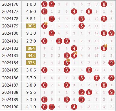 【个位】:上期开出个位0号,个位上近5期呈现一个冷-热-热-热-热的变化趋势,个位走势上连续热号的冲击,容易带动冷码的回归。