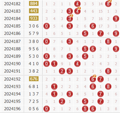 【个位】:上期开出个位6号,个位上近5期呈现一个热-冷-冷-冷-热的变化趋势,个位走势上冷号连出之后带来了热号的回温,走势发展比较极端。
