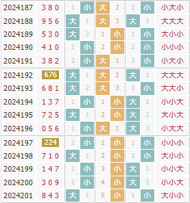 上期开出了号码843,组六类型,偶偶奇,大小小形态,和值15,跨度5。在大小走势上,近10期里全大开出了1期,2大1小开出了3期,1大2小开出了5期,全小开出了1期。近期小号上升力度偏大,连续四期开出一大两小组合。