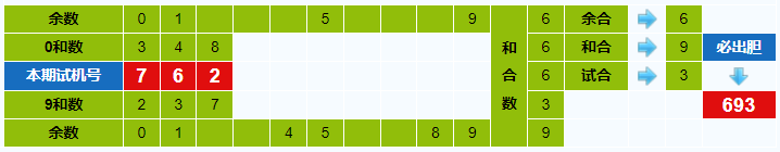 本期3d试机号开出的号码是762,胆码计算器开出的号码是693,重合了一个6号球。结合近期试机号命中开奖号走势图来看,近期试机号命中几率有所降低,目前空缺两期命中,因此本期有较大的反弹动力。重合的6号球为本期隔期号,建议重点关注。