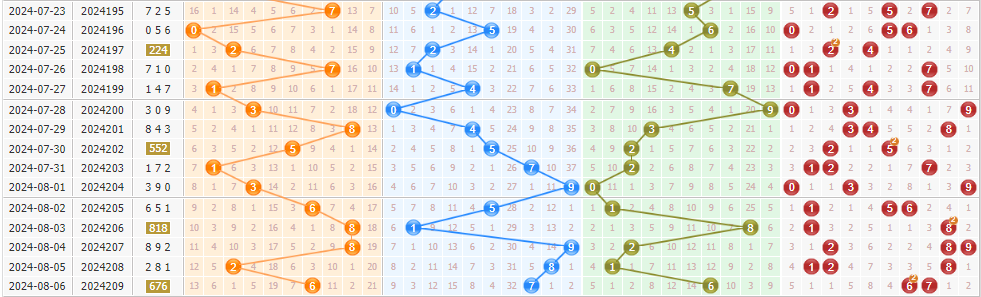 个位出6号,近5期奖号分别遗漏11-25-3-2-12,开出高遗漏号码的比例较大,上期再次开出冷号,本期建议关注冷号4。