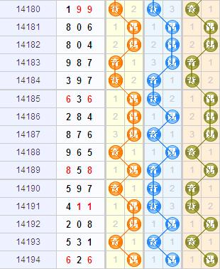 个位的奇数和偶数比与十位是一样的,也是1比1的比例,近4期的走势与此图最上面4期刚好一样,如果按照这样的走势,那么接下去一期极有可能开出奇数,放偶数的出现,所以本期看好偶数。