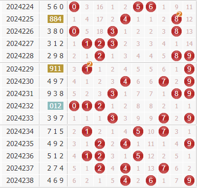 福彩3d第2024239期出号分析: