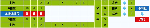 本期3d试机号开出的号码是069,胆码计算器开出的号码是793,重合一个9号球。结合近期试机号命中开奖号走势图来看,近期试机号命中几率有着非常大的上升空间,并且近两次命中均为隔期命中,上期空缺一期没有命中,本期看好试机号命中,重合的9号球已经四期连开,本期重点关注9号球。