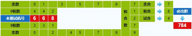 本期3d试机号开出的号码是668,胆码计算器开出的号码是784,重合一个8号球。结合近期试机号命中开奖号走势图来看,近期试机号命中几率有所提升,在近十期有非常好的表现,本期命中可能性非常大。8号球近期遗漏多期,近期看好破冰。
