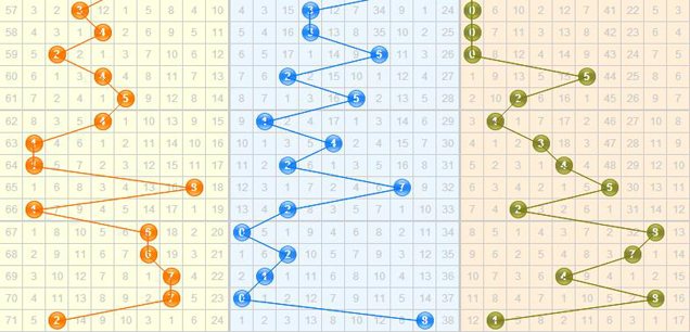 百位分析:0号球和9号球分别遗漏71期和24期,本期可进行防守,2号球走势比较温和,3号球、5号球、8号球是冷号球。本期推荐:023589。