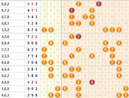 从上图中可以看到胆码计算器的命中率达到了63.16%,可见预测胆码命中的几率还是很高的。本期胆码计算器预测必出胆712,结合走势图,苏会文看好1号球和7号球。其中7号球已经遗漏5期没有开出了,本期开出的可能性比较大。