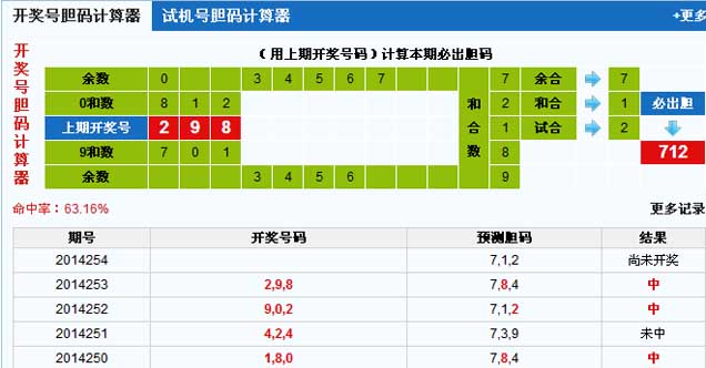 3d开奖号胆码计算器: