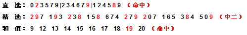 和值分析:近5期依次开出和值11-9-10-11-19,根据和值走势,本期和值推荐:12 13 14 15 16 17 18 20 21