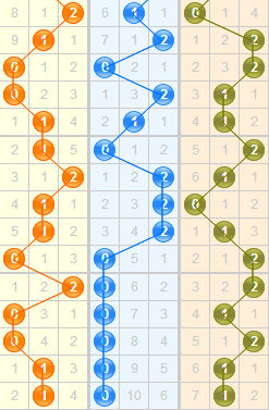 根据上面的走势图来分析,百位上1路走势较热,2路走势较冷,上期开出1路,结合走势本期百位看好0路、2路。十位上0路走势走热,1路走势偏冷,连续6开出0路,本期十位仍看好1路、2路。个位上1路走势走强,0路走势偏冷,上期开出1路,结合走势,本期个位看好2路,防0路开出。