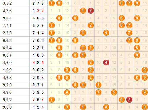 跨度分析:根据近15期的跨度走势来看,大跨度开出次数较多,在昨晚开出了跨度8的大跨,结合走势,本期仍有可能继续开出大跨度。