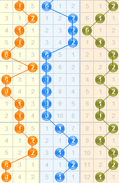 和值分析:上期开出和值14,观察近15期的和值走势,近期开出的和值多在10-20,结合走势,本期和值推荐:10 12 13 15 16 17 18 19 21