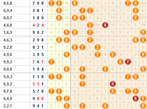 跨度分析:根据近15期的跨度走势来看,大跨度开出的次数较多,上期开出大跨度8,结合走势,本期仍有可能继续开出大跨度。