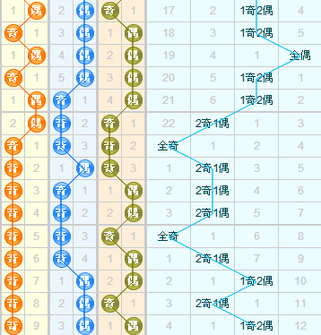 根据奇偶走势图分析,从整体上来看,近15期内奇数开出24次,偶数开出21次,奇数出号走势较强。百位上连续9期开出奇数,奇数走势较强,上期开出奇数3,结合走势本期百位防偶数楷书。十位上奇偶走势比较平衡,上期开出偶数0,结合走势本期仍看好偶数。个位上奇偶走势比较平衡,上期开出偶数4,结合走势,本期个位看好偶数。