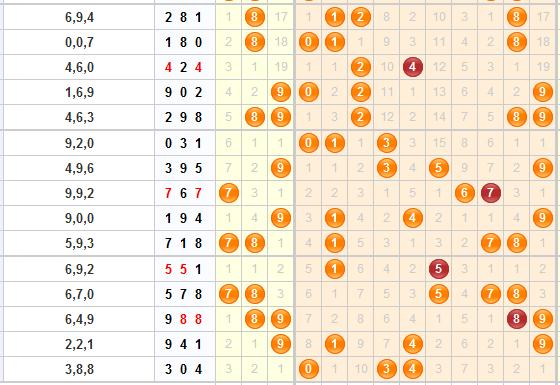 通过上面的福彩3D综合走势图可以看出,近10期内由于上期开出了304,使得号码3跟4开始转温,这10期中号码1、5、9比较热;号码4、7、8开始转温;号码0、2都比较冷。