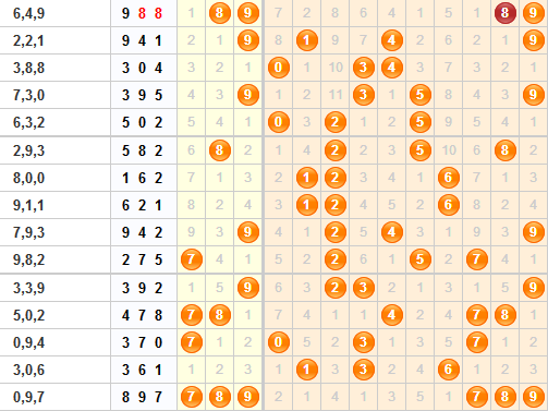 上期的开奖结果是897,组六组合,大大大,偶奇奇,012路号码是201,和值为24,跨度2。