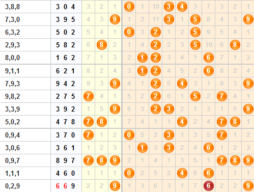 组合分析:在连续15期开出组六组合,终于在昨晚开出了669的组三组合。结合组合类型走势,本期看好组六。