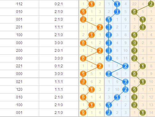 十位分析:0路在15期中开出10期,出现比较频繁,1路和2路走势都比较冷一些,在15期中均只出现了3期,因此本期比较看好0路。本期小马哥推荐0路。