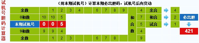 根据以上3D试机号试开走势图分析,今日试机号的开奖号码是005,结合走势图,本期重点看好0号球的开出,3d之家3d试机号胆码计算器推荐421,结合3d之家试机号试开走势图来分析,本期看好1号球的开出,3号球是规律号球,本期有开出的可能,本期重点关注:013678。