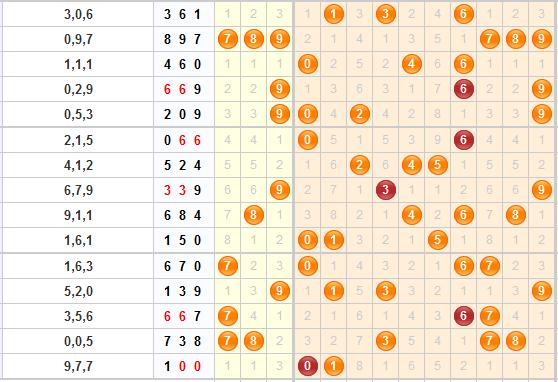 对子号分析:近期的对子号开得是特别的有规律,都是隔期开,上期也同样是隔期开,而且近几天中对子开的还是蛮勤快的,15天内就有5天是对子号,虽然对子隔期开的规律很明显,但不能表示它不会一下子给你来个连开,所以本期组三还是需要关注的。
