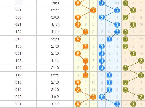 个位分析:从走势图来看,1路开出后,不是开出0路就是开出2路,而2路上上期已经有开出过,本期应该会开出0路,小马哥本期看好0路。