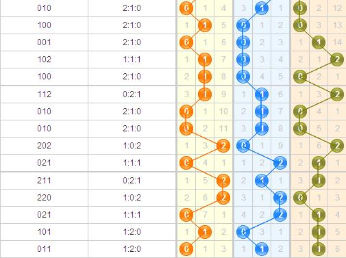 百位分析:0路开出后不是1路就是2路,而上上期已经开出1路,本期会开出1路的概率并不是很大,因此小马哥比较看好2路。本期小马哥推荐2路。