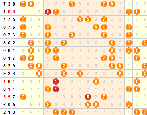 从上面的走势图来看,前几期大跨度开出的比较频繁,而最近这几期中小跨度的走势有回暖的迹象。在间隔了1期之后,又在昨晚开出了下跨度2。结合走势来看,本期可防大跨度开出。跨度4、9分别已经有19期和23期没有开出了,本期可以关注一下。本期苏会文推荐关注跨度:3、4、5、9