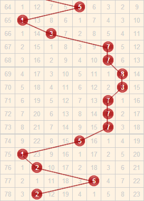 上期跨度开出2,跨度2近期开出比较热,本期不看好小跨度,本期跨度看好3-8,跨度4持续19期未开出,本期跨度4有开出迹象,跨度8持续8期未开出,本期可关注跨度8,本期重点关注跨度6,7。