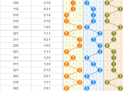 百位分析:从走势图中可以看出0路开出之后,以2路开出的次数最多,由此可推测出2路会开出,1路目前依旧属于遗漏期的状态。本期小马哥推荐2路。