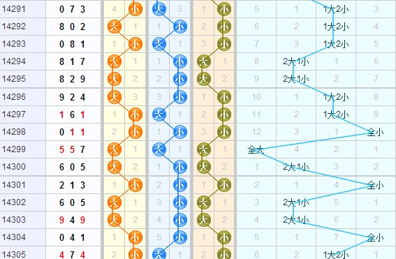 上期开出小大小,开出两小一大比,百位上期开出小号球,本期百位看好小号球,上期十位开出大号球,十位大号球近期走热,十位本期依旧看好大号球的开出,个位上期开出小号球,本期个位继续看好小号球防大号球,本期大小形态推荐小大小,小大大。
