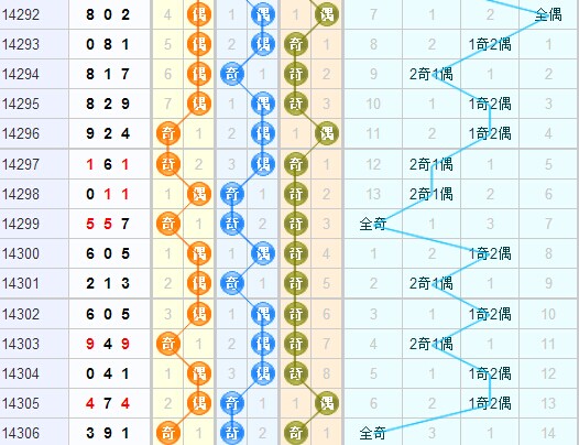 上期开出奇奇奇,开出全奇比,百位上期开出奇数号,本期百位依旧看好奇数号,上期十位开出奇数号,结合走势图,本期十位看好偶数号,个位上期开出奇数号,本期个位继续看好奇数号防偶数号,本期大小形态推荐奇偶奇、奇偶偶。