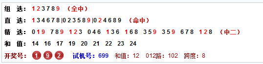 趋势分析:上期开出了192,都是热号球,冷号球依旧是比较冷的,所以本期重点还是需要关注热号球跟温号球的开出,本期可以重点关注013468。