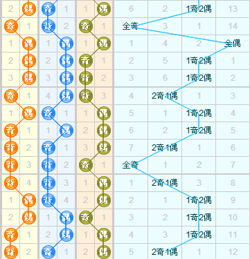 从近15期的奇偶走势图来看,奇偶走势比较平衡。百位上前期开出的以偶数为主,后期开出的以奇数为主,上期开出奇数7,连续两期开出奇数,本期仍看好奇数。十位上奇偶走势比较平衡,间隔了两期之后又开出了奇数,结合走势,本期十位看好偶数。个位上偶数走势稍微较奇数强一些,上期开出偶数4,连续两期开出偶数,结合走势本期可关注奇数。结合走势,本期推荐奇偶形态:奇偶奇、偶奇奇、偶奇偶。