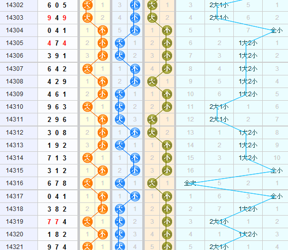 从跨度走势可以看出,最近几期跨度在4、5左右,上期跨度开出5,本期可以关注,3D之家舍利子跨度推荐2、3、4、6。