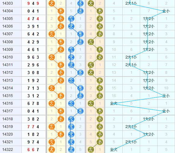 从福彩3D综合走势图来看,上期开出组三,出奖号667,6号球有回暖的迹象,本期6号球开出的可能性较大;根据以往5号球的出号走势图看最多间隔20期未开,防止5号球触底反弹;0号球已经5期未出,本期开出0号球的可能性较大;9号球已冷了很多期,第14322期有开出,9号球有回暖的迹象,开出的可能性较大;上一期开出全大,本期看好2大1小组合,上一期偶数球开的比较多,本期比较看好偶数球,3D之家舍利子组选推荐034568。上一期开组三,本期看重组六组合防豹子。