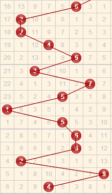 从跨度走势可以看出,上一期来了个大跨度,开出温号4。根据以往的走势看,本期的跨度应该在2-8之间,3D之家舍利子跨度推荐2、3、4、6、7。