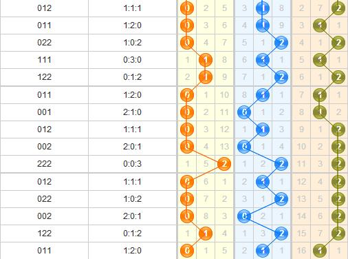 十位分析:从走势图看来,1路开出次数还算比较多,且1路开出后,不是开出2路,就是开出0路,从上图看来,2路开出的次数多一些。本期小马哥推荐2路。