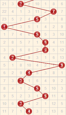 从3D之家近期和值走势分析图来看,最近几期的和值波动较大,和值走向比较的诡异,本期和值将在7-18之间开出,3D之家舍利子和值推荐7、11、13、15、17、19。