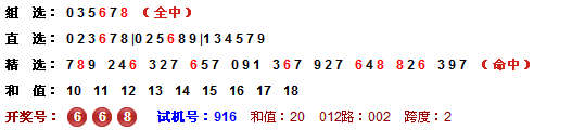 组合分析:昨晚开出的是668,组三组合。上期刚说要防组三开出,结果还真的开出了。在近15期中共开出组三有4期,而上期刚开出组三,本期再开出组三的可能性不是很大,结合走势,本期看好组六组合。