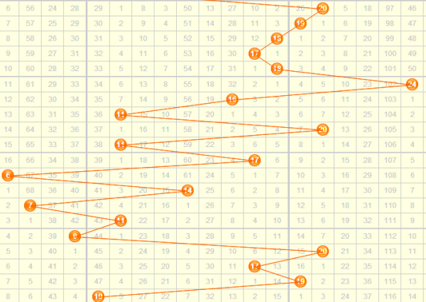 从跨度走势可以看出,根据以往的走势看,本期的跨度应该在2-8之间,3D之家舍利子跨度推荐1、2、3、4、5、6、8。