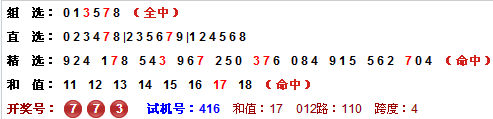 上期回顾:上期开出的是773的组三组合,和值是17,跨度是4,大大小,奇奇奇,012路号码是110。