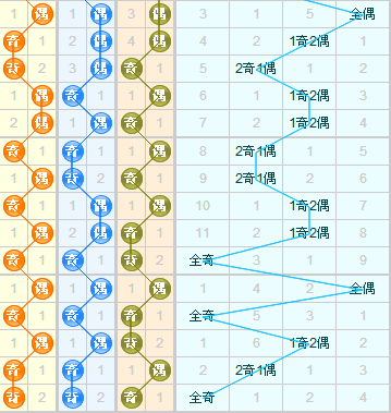 结合走势,本期奇偶形态推荐:偶偶奇、偶奇偶、奇偶奇。