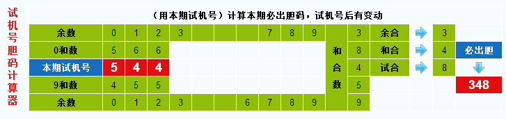 3D试机号胆码计算器:今晚必出胆码348