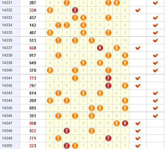 从福彩3D综合走势图来看,上期开出组三,出奖号223。上期开出3号球,3号球有由冷转温的趋势,本期看好3号球的开出;1号球近期为温号球,本期看好1号球的开出;4号球已经7期开出一期,根据以往4号球的走势,4号球最长6-7期未开出,超过7期必开,本期预防4号球的开出;8号球为冷号球,已3期未出,太湖字谜明码有8,本期看好我8号球的开出;上上期开出7号球,呈现转热趋势,本期看好7号球的开出;6号球已5期未开,防6号球触底反弹。
