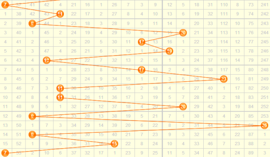 从跨度走势可以看出,根据以往的走势看,本期的跨度应该在2-8之间,3D之家舍利子跨度推荐2、3、4、5、7、8。