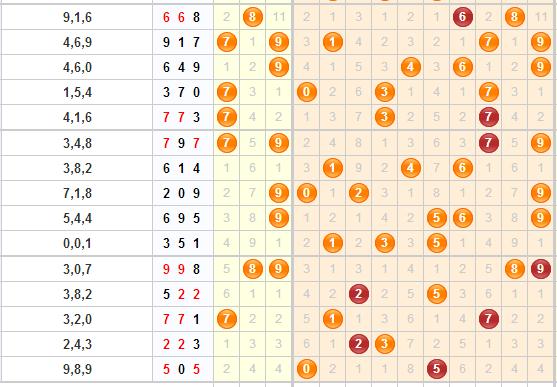 大小分析:从近10期来看,百位的大小比是7:3,看来依旧是大数开的比较多,本期的话可以关注小数的开出;十位的大小比是5:5,十位上的大小数倒是比较平衡,近2期都开出了小数,本期的话可以关注大数的开出;个位中的大小比是5:5,个位上的大小比跟十位上比较相似,在连续开出了3期小数之后,开始转大数,本期的话可以再转战小数的开出。