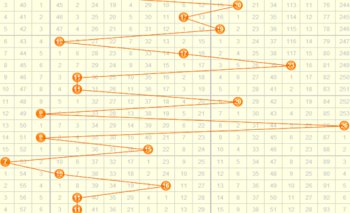 从跨度走势可以看出,根据以往的走势看,本期的跨度应该在2-8之间,3D之家舍利子跨度推荐2、3、4、5、7、8。