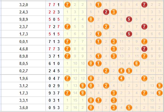 组选重点号码分析:3D之家3D开奖号码中以最近十期来看,上期开出了053,开出了2个重复号跟1个隔期号,这点需要大家关注一下。本期重点关注0、1、5、6、7等号码。重点号码分析:0号球是上期开过的号,目前已经连续开出了2期,本期的话有可能会再开出来;1号球目前是个隔期号,同时还是上期开出的1号球的临码,所以本期的话是最有可能开出来的;5号球是上期开过的号,也有可能会重复开出;6号球是上期开出的5号球的临码,本期有可能会开;7号球目前是遗漏了2期,从近10期的走势来看,7号球在遗漏2期开出的可能性很大。