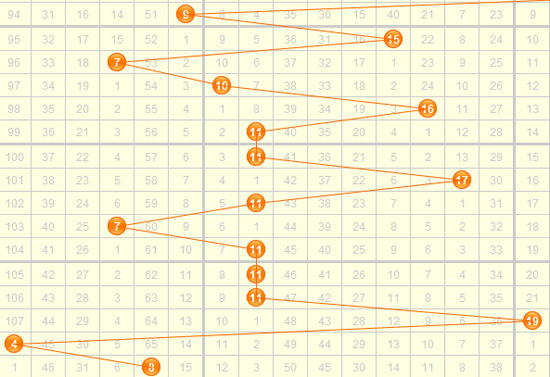 从跨度走势可以看出,根据以往的走势看,本期的跨度应该在2-8之间,3D之家舍利子跨度推荐2、4、6、7、8、9。