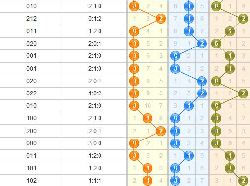 下面是012路走势图:
